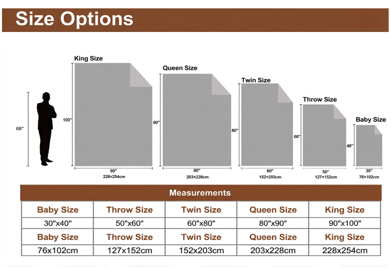 1. Standard Sizes of European & American Custom Blankets (Imperial + Metric) 1. Bed Blanket Sizes (Adapting to Mainstream European & American Bed Types, Must-Stock)