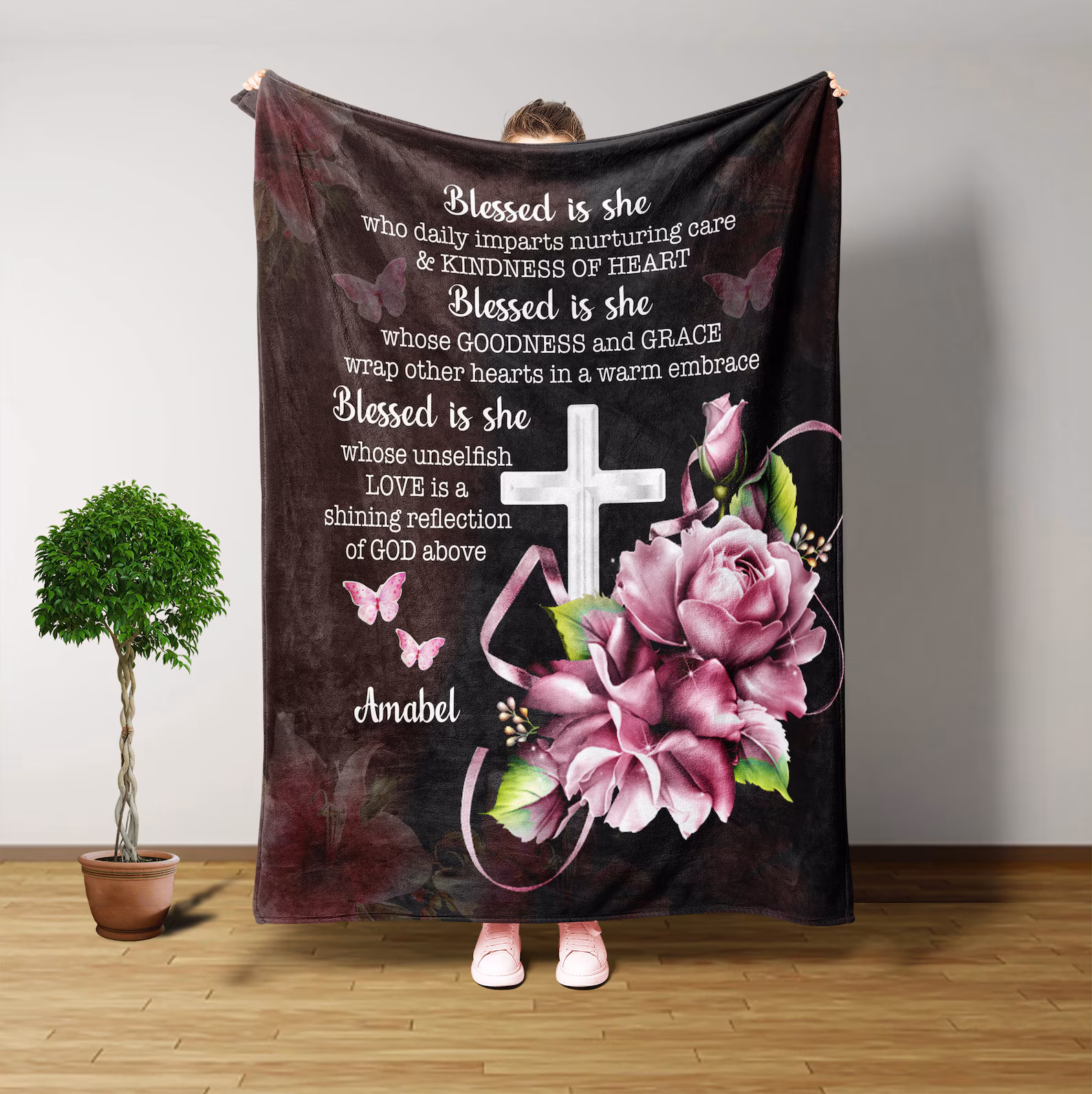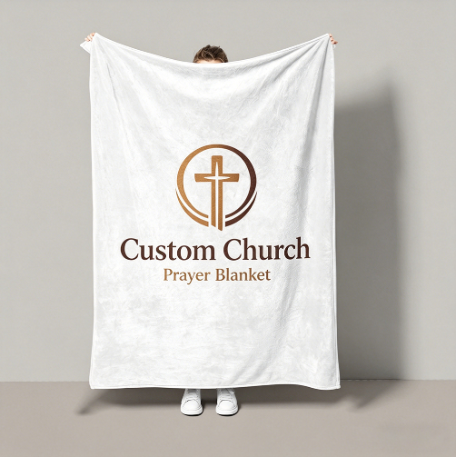 Personalized Christian fleece blankets for churches. Add your logo, Bible verse, or custom text. Ultra-soft, durable, ideal for gifts, events, and prayer time.